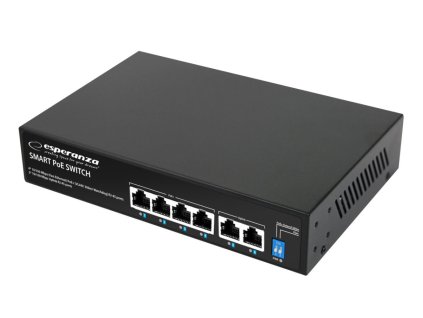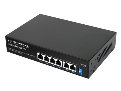 Switch Esperanza Spinner ENS105 s 4 porty PoE a 60W výkonem je ideální pro IP monitorování. S přenosovou rychlostí až 100Mbps a automatickou detekcí připojení se snadno instaluje.