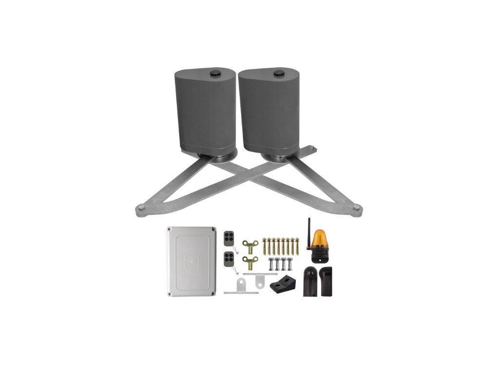 Tento pákový pohon vrat IN je určen pro dvoukřídlé brány se silnými sloupky- délka křídla 2,5m, váha křídla 250kg