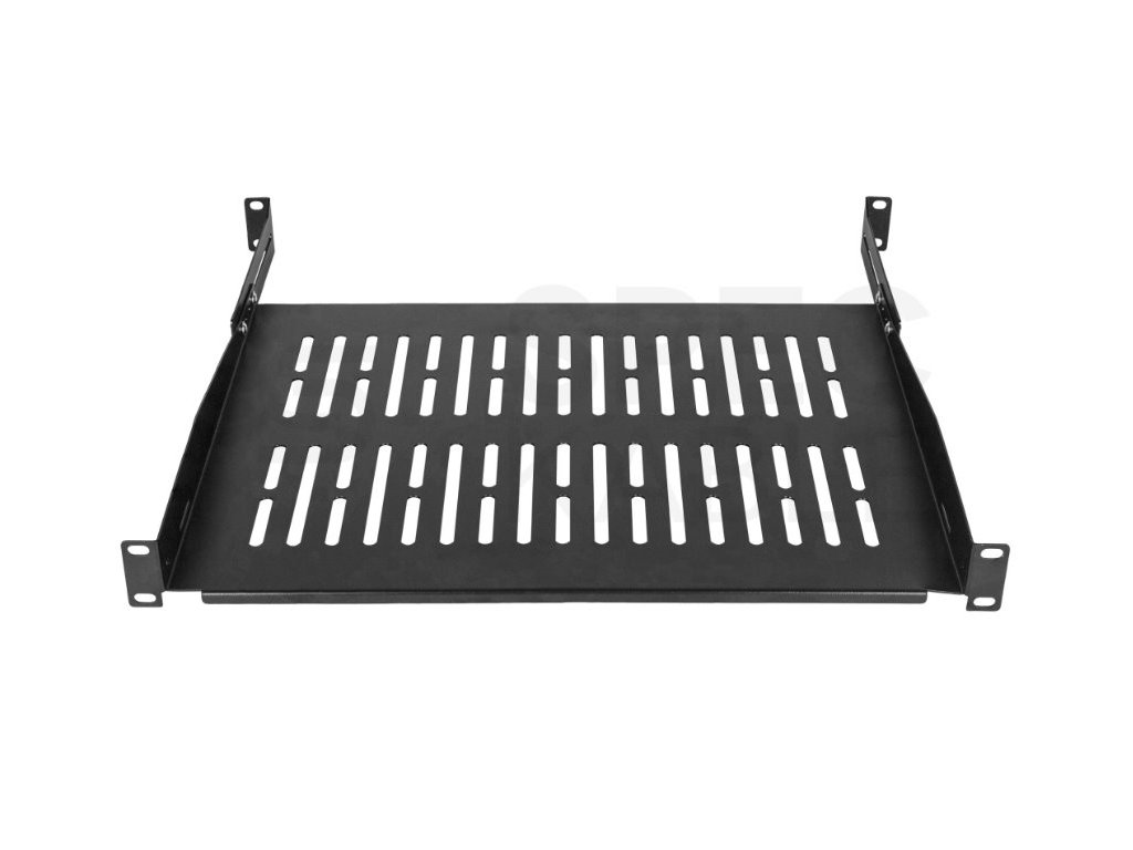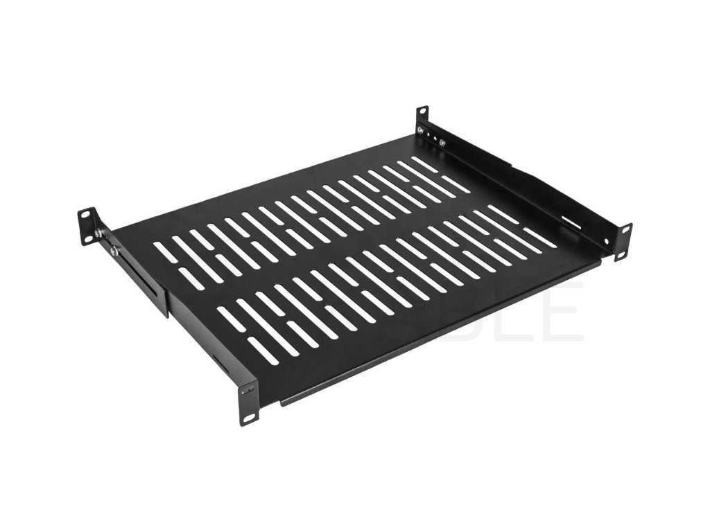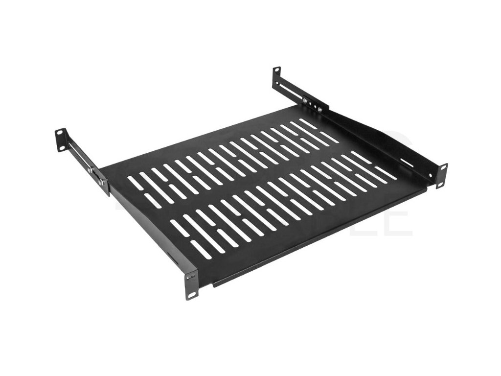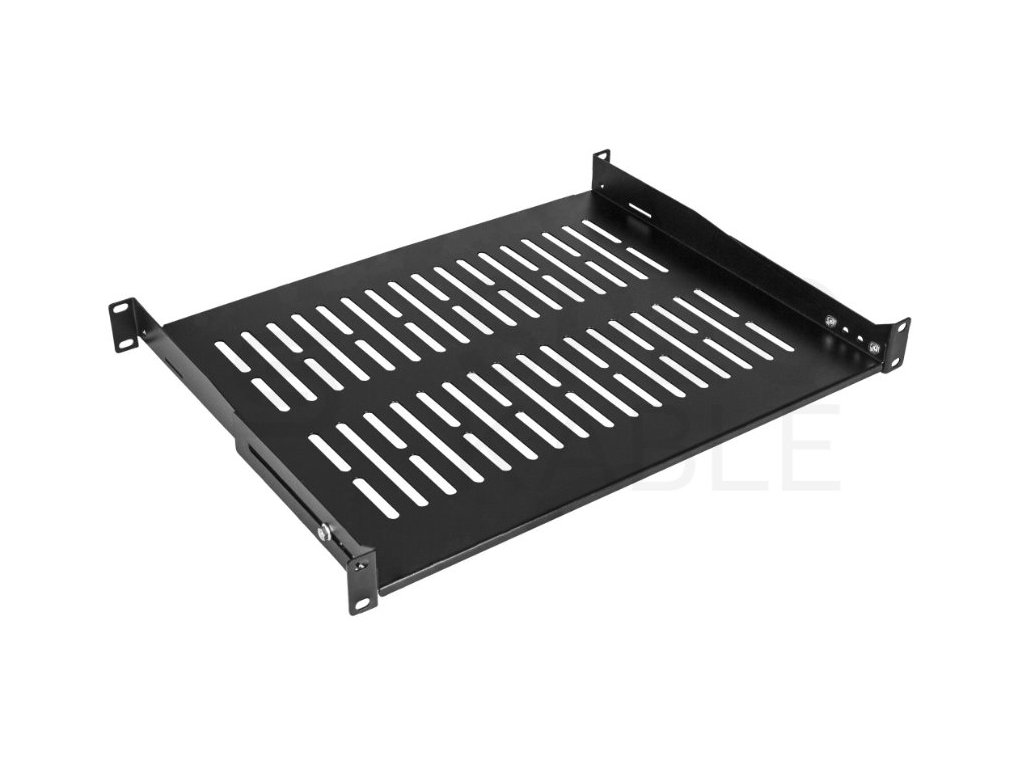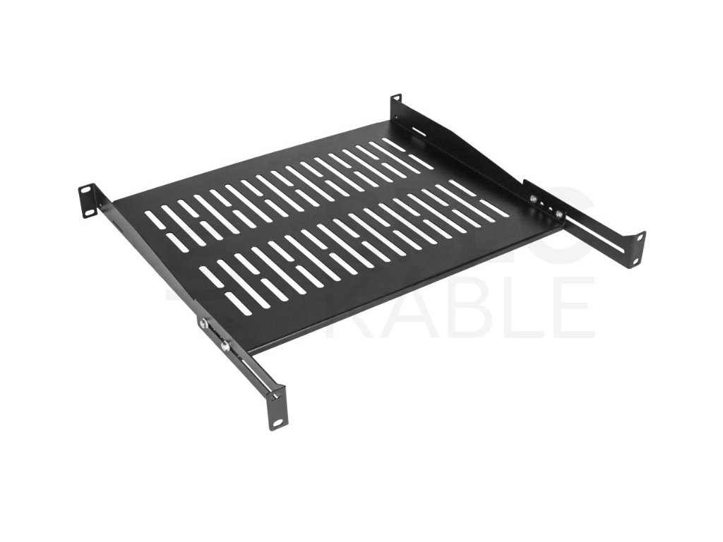 Nastavitelná police do racku NEKU 1U 19" 350mm (450mm) černá nabízí vysokou nosnost až 40 kg a kvalitní ocelovou konstrukci pro stabilní uložení zařízení.