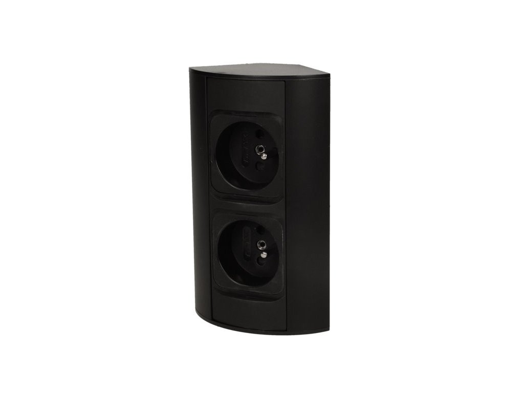 Povrchová zásuvka rohová ORNO OR-AE-1303/B, 2x zásuvka 230V, kabel bez vidlice, černá