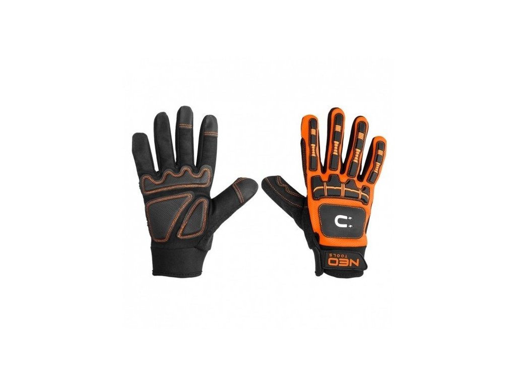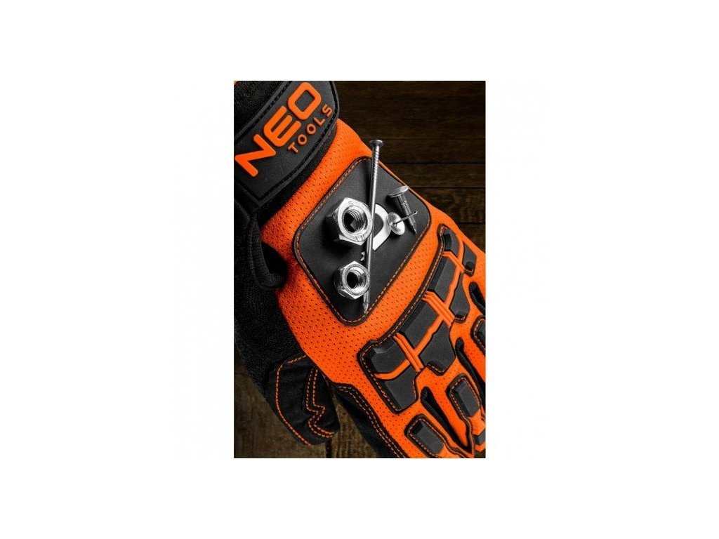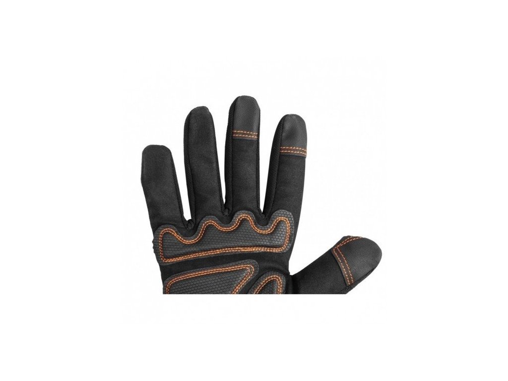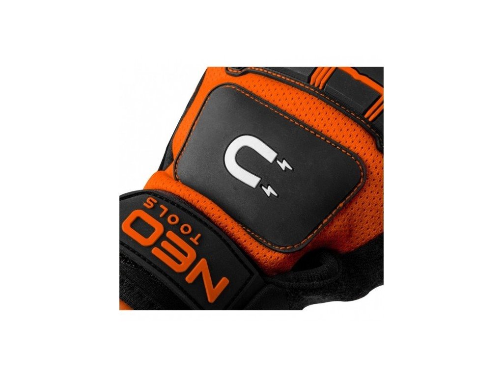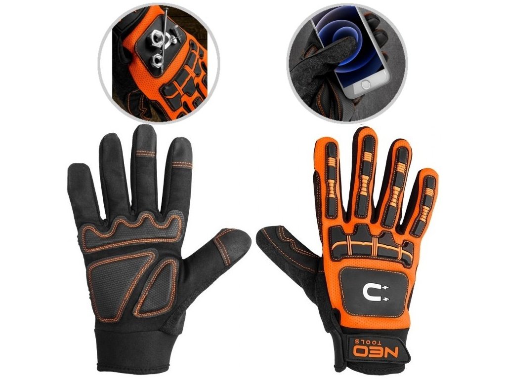 Pracovní rukavice s magnetem na zadní straně, který umožňuje připevnit šrouby nebo matice, aniž byste museli sahat do kapsy nebo krabice. Prsty a zápěstí jsou zajištěny pryžovým potahem tlumícím nárazy, který eliminuje oděrky. Suchý zip na zápěstí umožňuje snadné nastavení. Své uplatnění najdou mimo jiné: