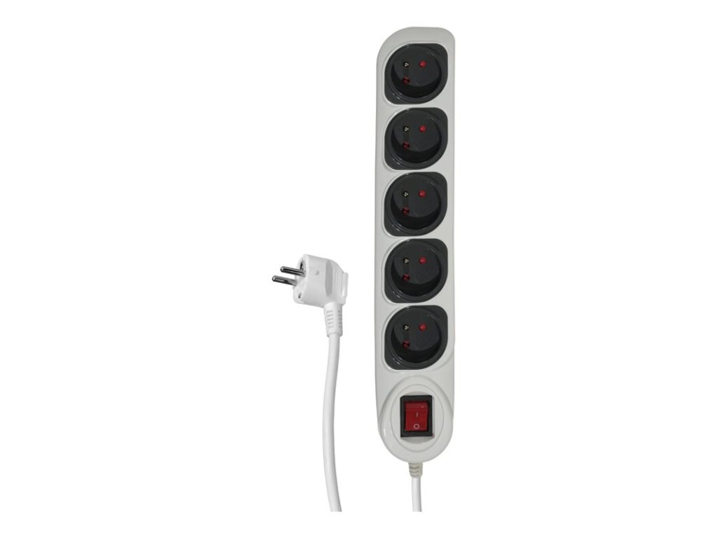 Přepěťová ochrana DPM FMP8115 , 5 zásuvek, uzemnění, 1,5m, šedá/bílá