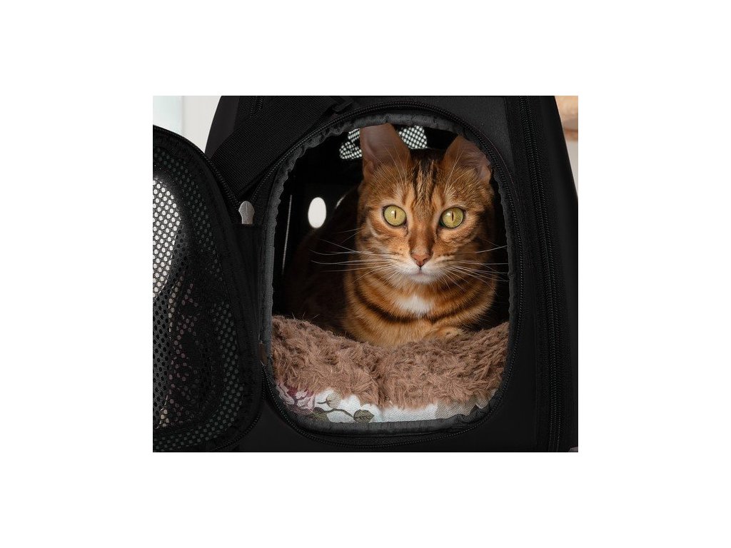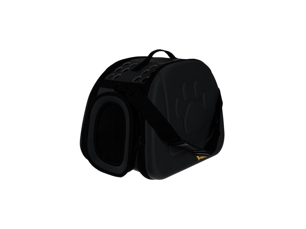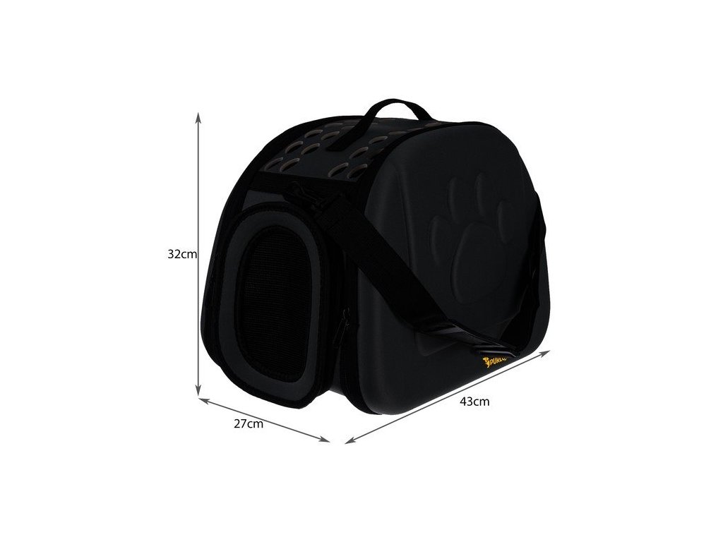 PŘENOSNÝ POPRUH A SKLÁDACÍ TRANSPORTER - nastavitelný ramenní popruh, který lze zcela odepnout z tašky, stejně jako ergonomická rukojeť pro pohodlnou přepravu mazlíčka usnadňující používání. Dodatečné pohodlné zipy umístěné vpředu a na obou stranách nosiče zjednodušují vstup a výstup zvířete. Tašku lze složit do malých rozměrů, díky čemuž je její skladování extrémně snadné.