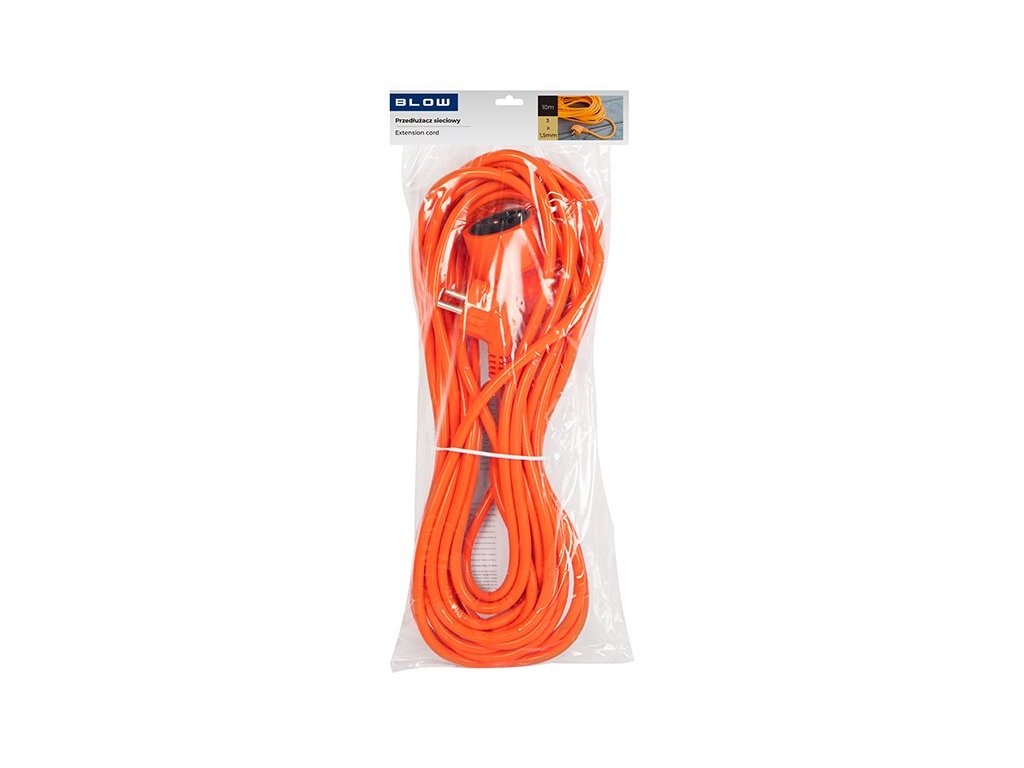 Tento oranžový prodlužovací kabel BLOW s jednou zásuvkou je určen pro domácí použití. Kabel má na jednom konci uzemněnou zásuvku a na druhém konci jednu zástrčku. Tento kabel umožňuje připojení elektrických zařízení až do vzdálenosti 10 m od zásuvky.