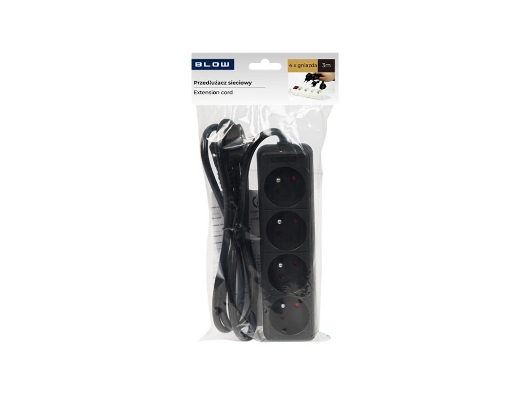 Prodlužovací kabel bez vypínače BLOW 98-064, 4zásuvky 3m, 3x1,5, černá