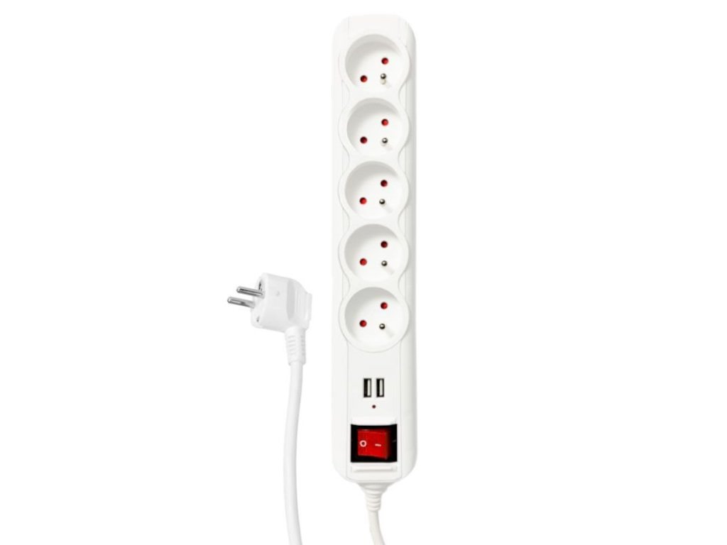 Prodlužovací kabel 5 zásuvek a délka 5 m, ideální pro domácnosti a kanceláře. Vybavený lomenou vidlicí a robustním průřezem vodičů 3 x 1,5 mm².