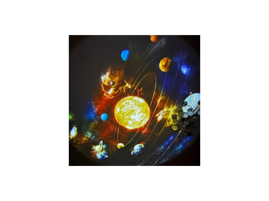 - Diapozitivy: 12 různých motivů, včetně 3D Měsíce, mlhoviny Severní Amerika a Galaxie Andromeda