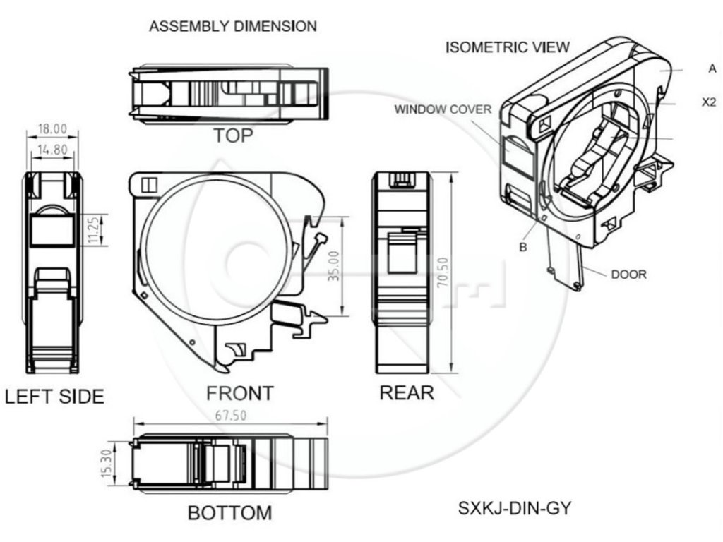 Průmyslový modul na DIN lištu pro jeden keystone šedý SXKJ-DIN-GY
