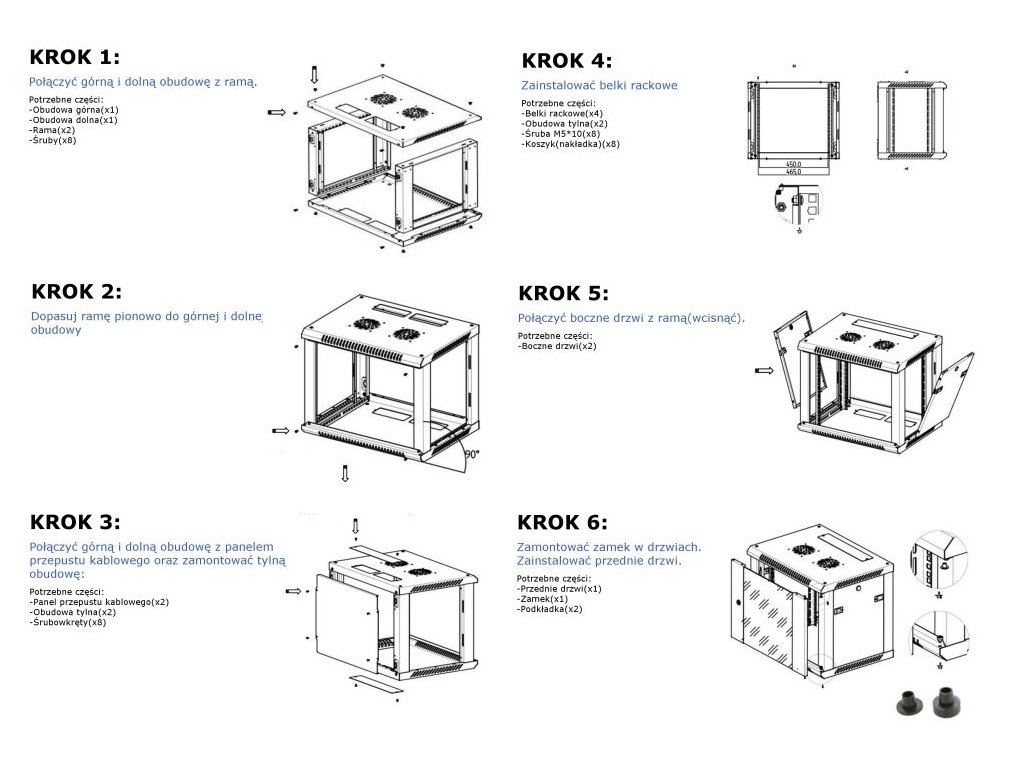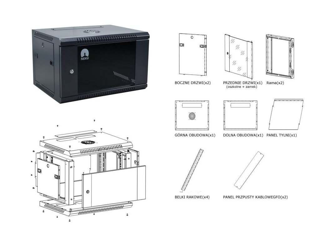 RACK skříň závěsná NEKU TS 19" 4U 450mm, černá, k samosestavení