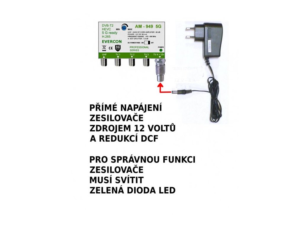 Redukce F konektor / DC konektor DCF-1, 5,5/2,5mm pro anténní zesilovače zajišťuje efektivní napájení. Ideální pro více výstupové zesilovače a multipřepínače.