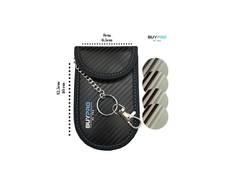 Ochranné pouzdro BUYPRO carbon je ideálním řešením pro každého, kdo chce zabezpečit své automobilové klíče před moderními krádežemi. Je vyrobeno z uhlíkových vláken a vnitřní část z vysoce kvalitní stínící tkaniny, což zajišťuje nejen odolnost, ale i elegantní vzhled. Rozměry pouzdra byly navrženy tak, aby se pohodlně vešel každý klíč od auta, a navíc nabízí praktické kapsy pro uschování dalších cenností.