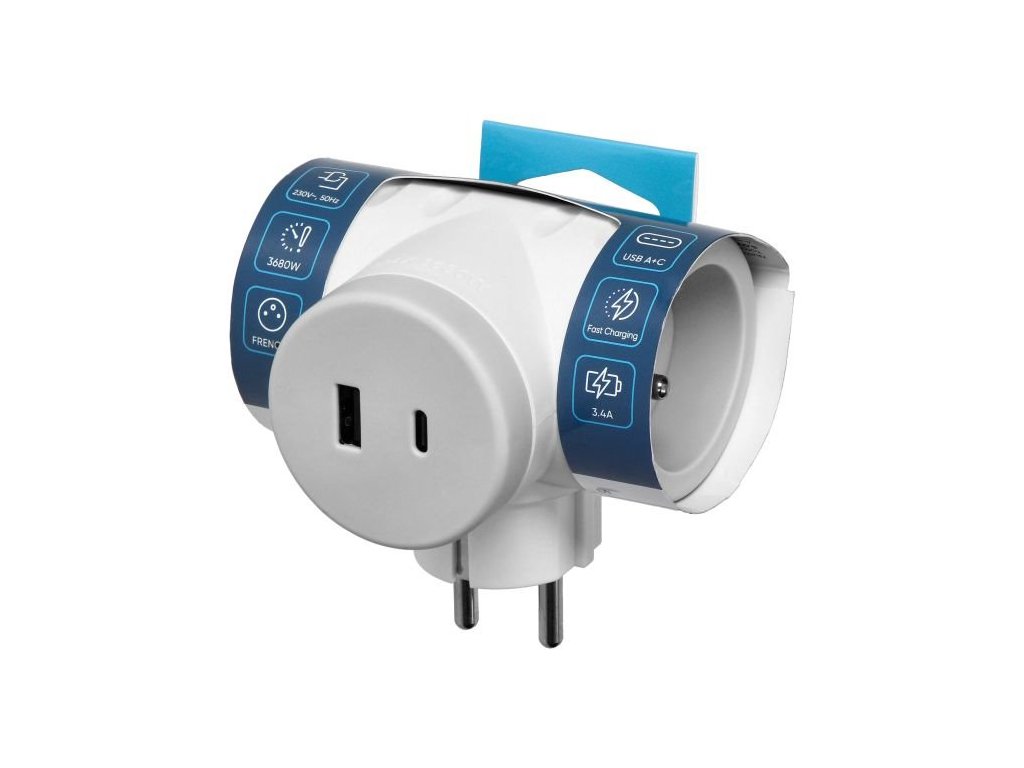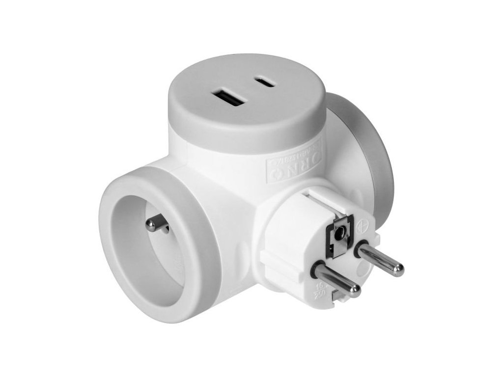 Rozbočovací zásuvka ORNO OR-AE-13281/G s USB nabíječkou, bílo-šedá