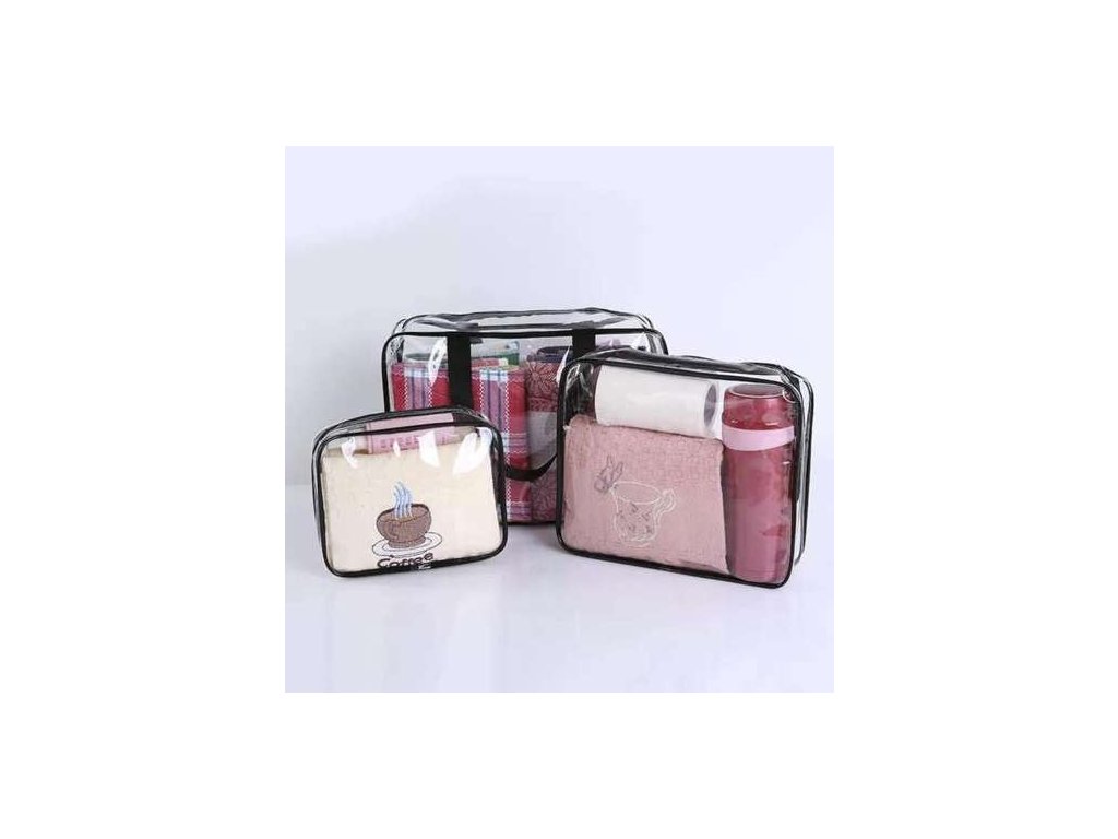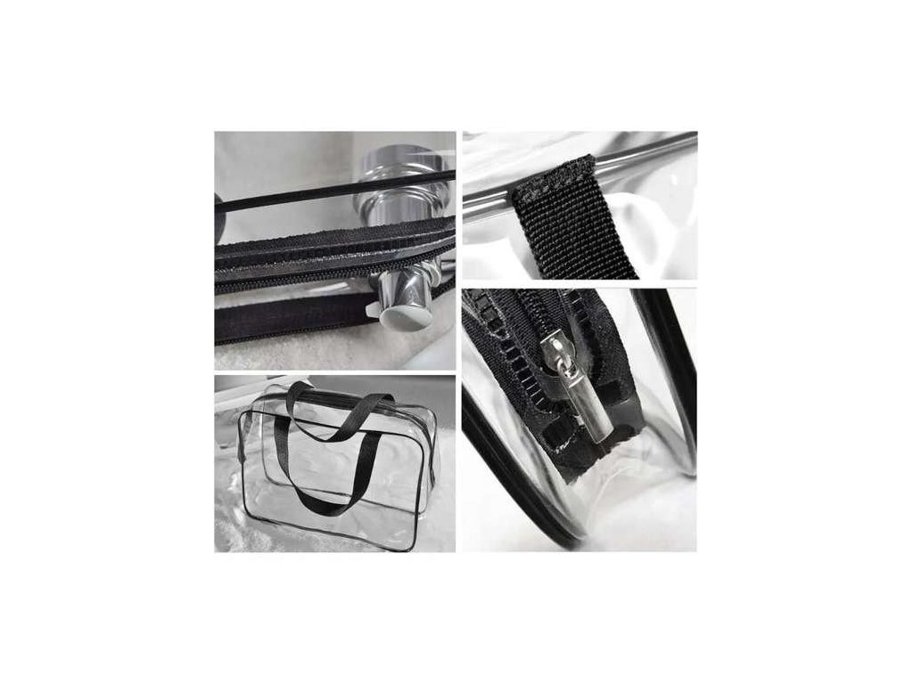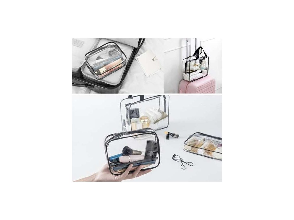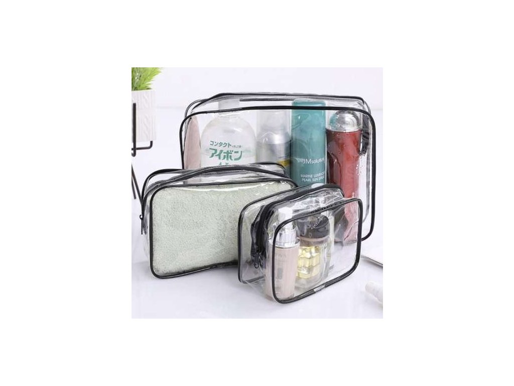Se sadou našich toaletních taštiček na zip můžete snadno roztřídit všechny své toaletní potřeby nebo doplňky na líčení a uspořádat svá zavazadla. Každá toaletní taštička má jiné rozměry, takže si jejich účel přizpůsobíte svým potřebám a lépe tak využijete prostor v kufru. Pojme veškeré toaletní příslušenství potřebné během výletů. Zcela průhledný materiál umožňuje vidět obsah tašky, aniž byste ji museli otevírat, což se hodí zejména na letištích. Toaletní sáčky jsou navíc voděodolné, takže si můžete být jisti, že se jejich obsah nedostane ven na ostatní zavazadlo. Největší toaletní taštička má pohodlné popruhy na nošení jako kabelku. Dobře poslouží během prázdninových výletů, krátkých výletů, chození do posilovny, na koupaliště nebo na trénink, stejně jako pro uložení doma.