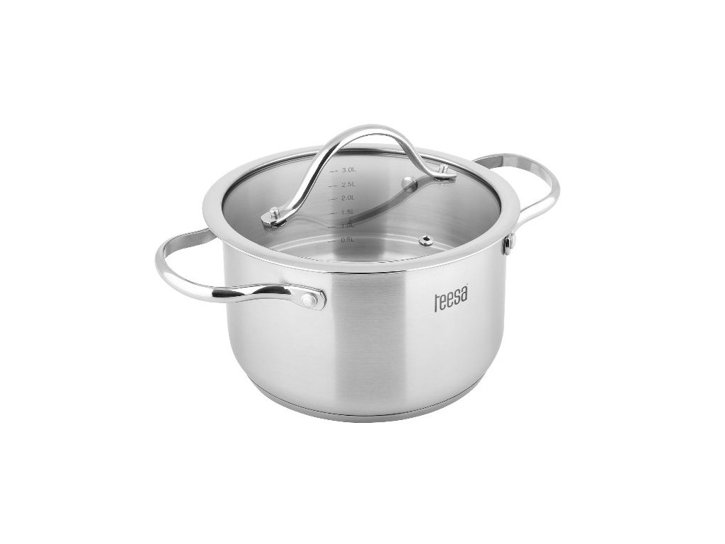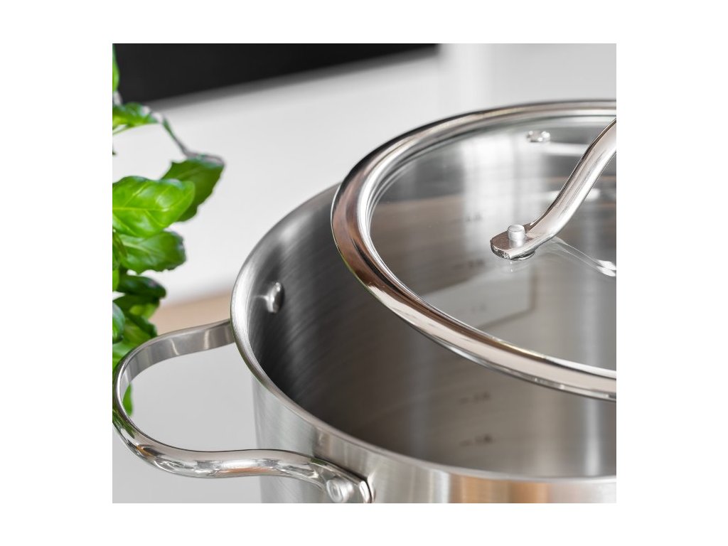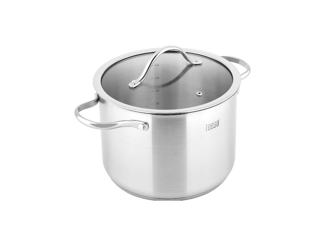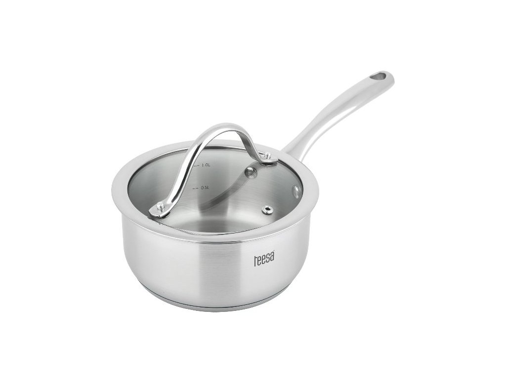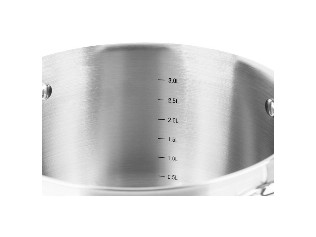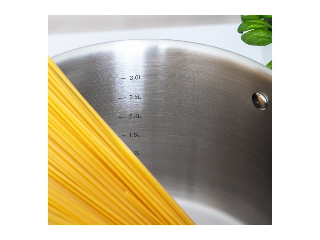 Ocelové hrnce Teesa jsou vybaveny praktickou litrovou váhou. Odměrka na vnitřní straně usnadní odměření vhodných poměrů přidaných surovin připravovaného pokrmu.