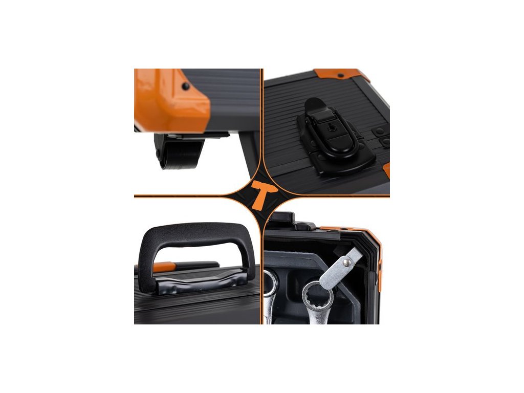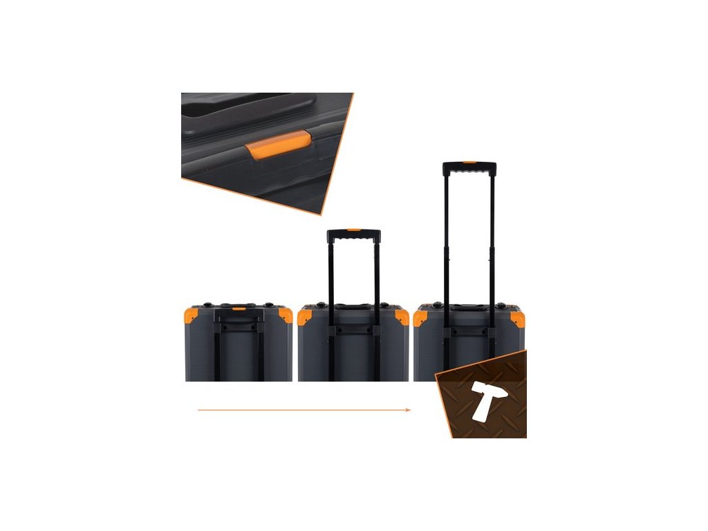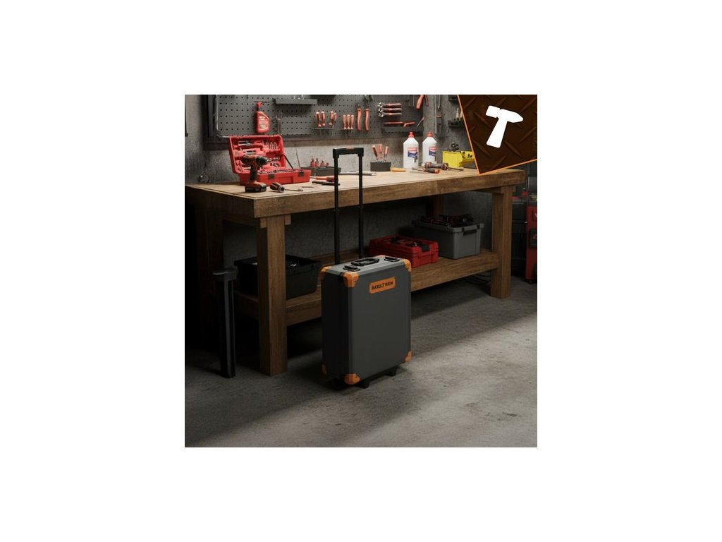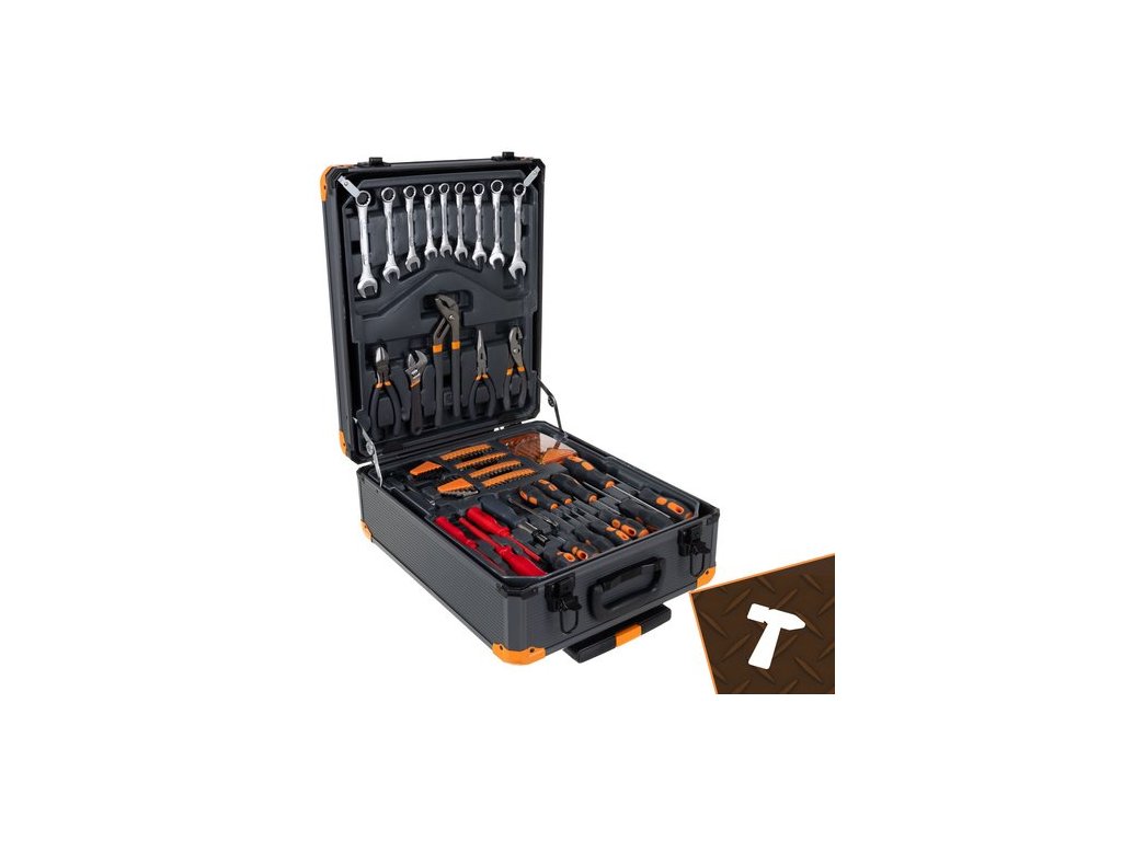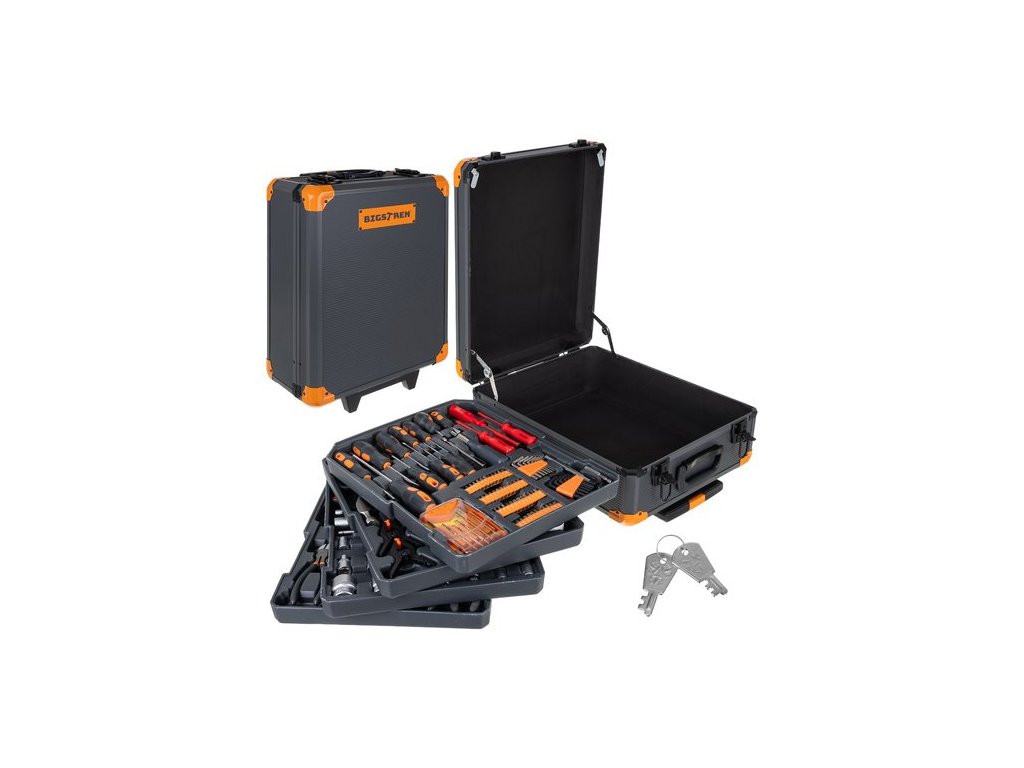 Tato sada nářadí je jednou z nejkomplexnějších sad nářadí dostupných na trhu. Hliníkové pouzdro obsahuje čtyři vyjímatelné organizéry naplněné klíči, nástrčnými klíči, bity, šroubováky, kleštěmi a montážním příslušenstvím . Sada je navržena tak, aby poskytovala naprostou mobilitu, organizaci a možnost provádět prakticky jakoukoli opravu. Kufr má kolečka, teleskopickou rukojeť a kovové zámky na klíč, díky čemuž je ideální pro domácnost, garáž, dílnu i mobilní práci.