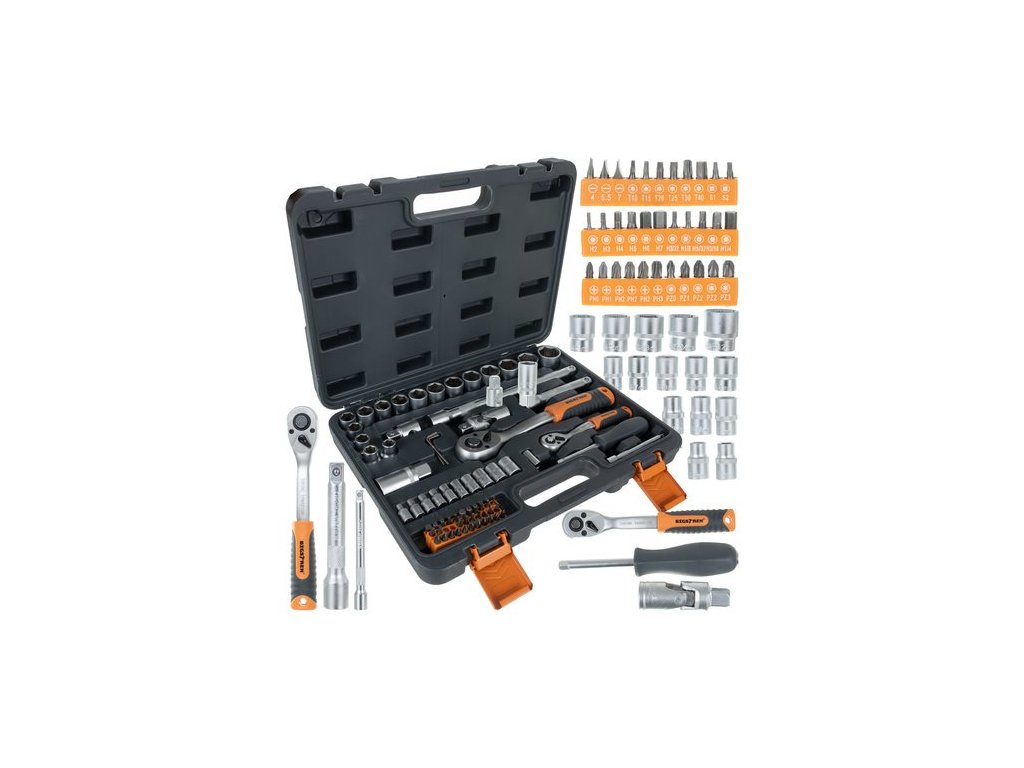 72dílná sada obsahuje široký výběr nástrčných klíčů, bitů, prodlužovacích nástavců a ručního nářadí pro přesnou práci při opravách domácnosti, montáži nábytku, údržbě automobilů a zahradničení. Všechny komponenty jsou vyrobeny z odolné uhlíkové oceli a ráčnový mechanismus 72T zajišťuje plynulý pohyb a přesnost. Praktické přepravní pouzdro zajišťuje mobilitu, organizaci a rychlý přístup k vašemu nářadí.