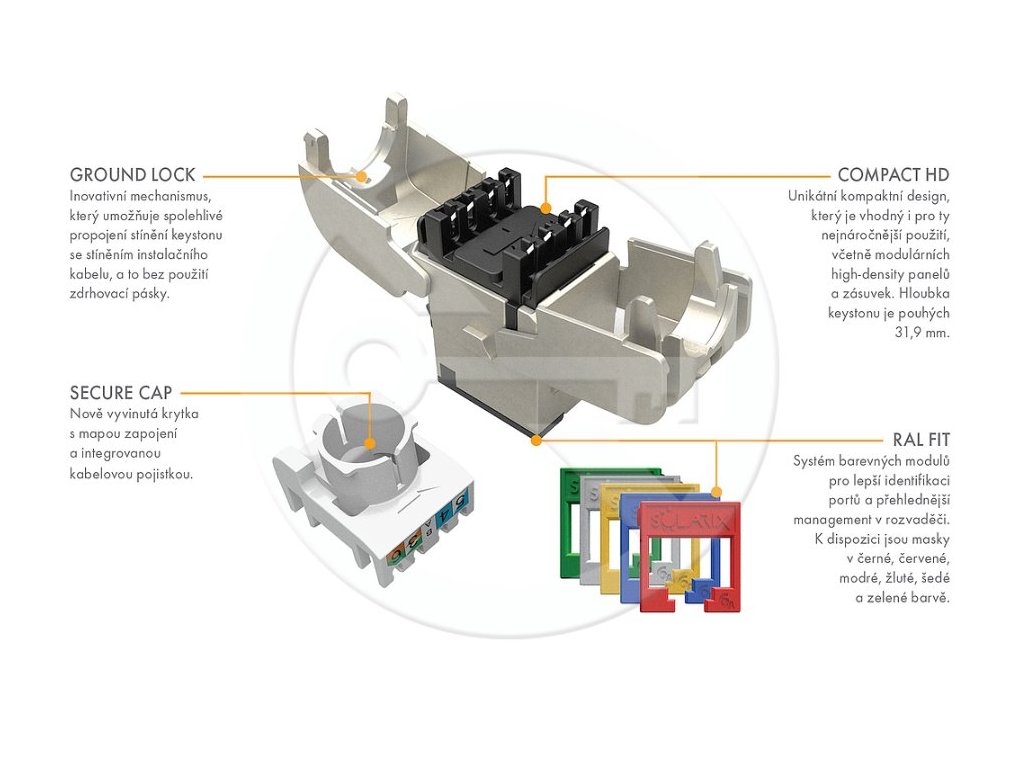 Samořezný keystone Solarix CAT6 STP SXKJ-6-STP-RAL-SA nabízí stínění a inovativní GROUND LOCK mechanismus pro spolehlivé připojení. Ideální pro vysokorychlostní ethernetové...