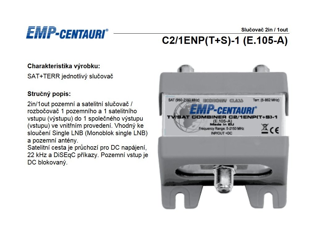 Vlastnosti produktu Satelitní slučovač C2/1ENP(T+S)-1