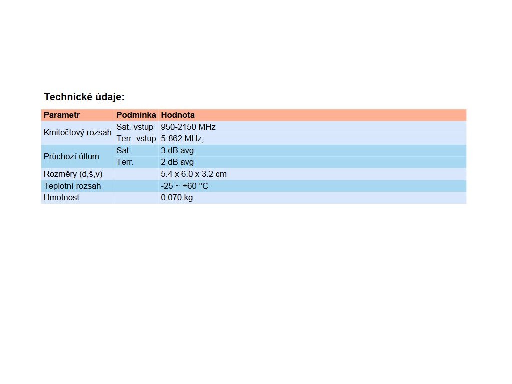 - Typ: 2in/1out pozemní a satelitní slučovač