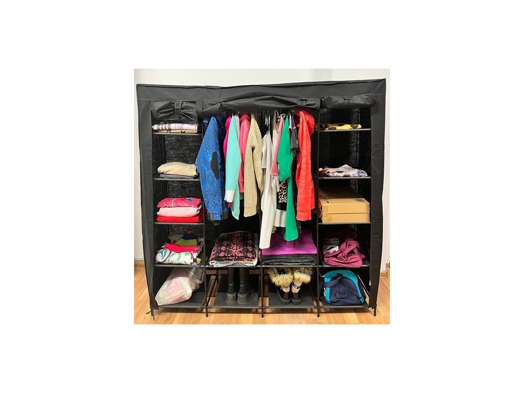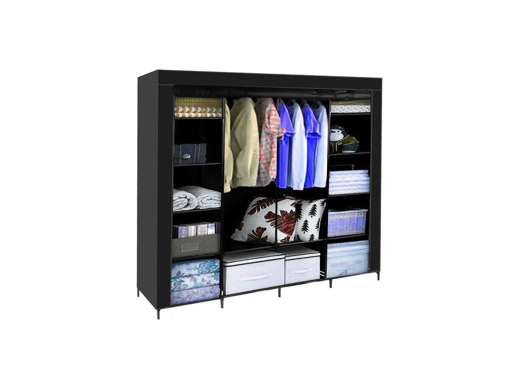 Látková šatní skříň pro uložení oblečení, spodního prádla a dalších textilních předmětů. Je vybavena závěsnými tyčemi a policemi, které vám umožní uspořádat uložené oblečení. Rychlé skládání a její lehkost jsou největší předností šatní skříně. Navíc ji můžete zapnout na zip a ochránit tak své oblečení např. před prachem, vlhkostí a pachy.