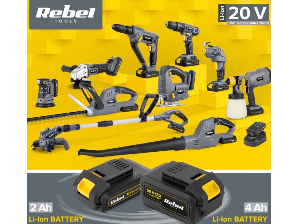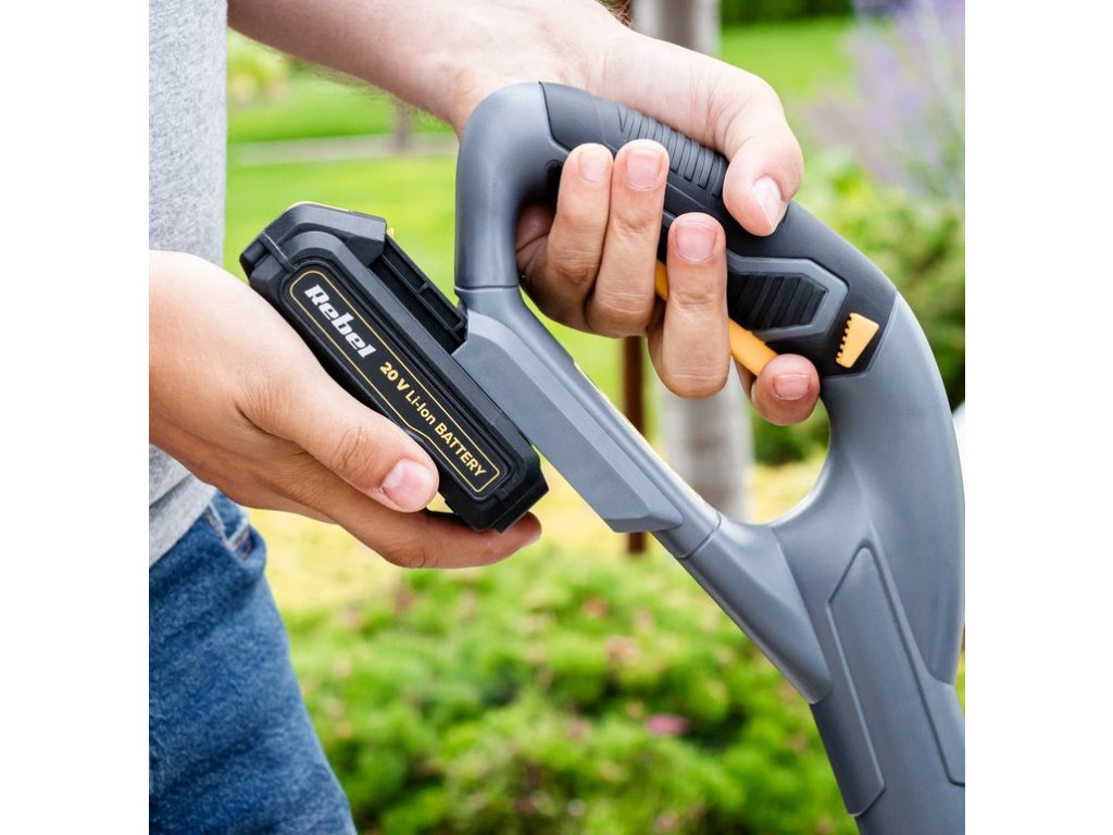 Baterie a nabíječka se prodávají samostatně. Pokud je tedy vaše zahrada velmi náročná, vyberte si vyměnitelné baterie 20 V, 2 A od Rebel Tools, které vám umožní pracovat bez zbytečných dlouhých přestávek na nabíjení.