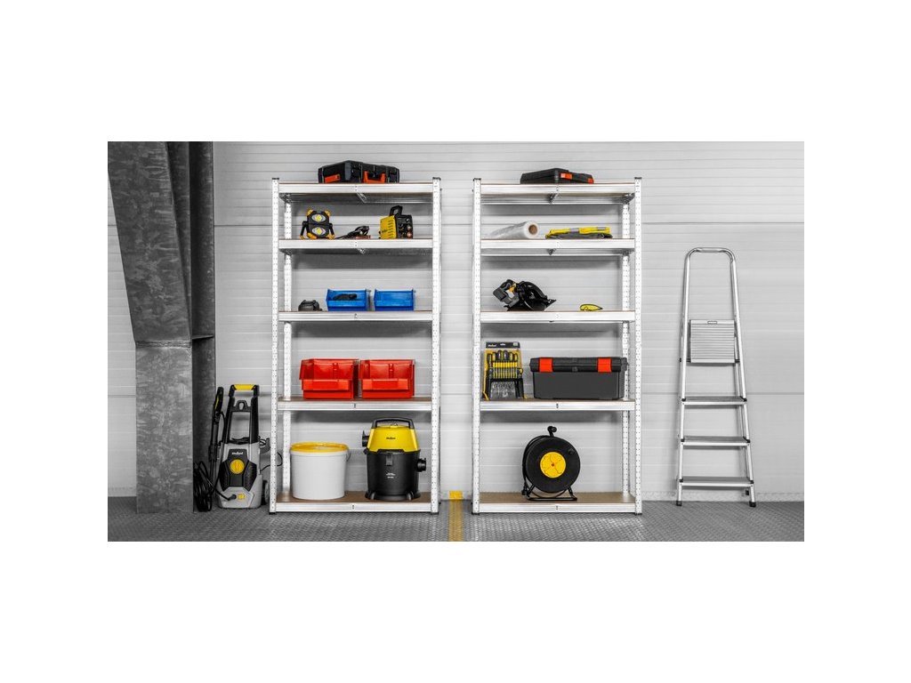 Dílenský regál je díky své robustní konstrukci z pozinkované oceli