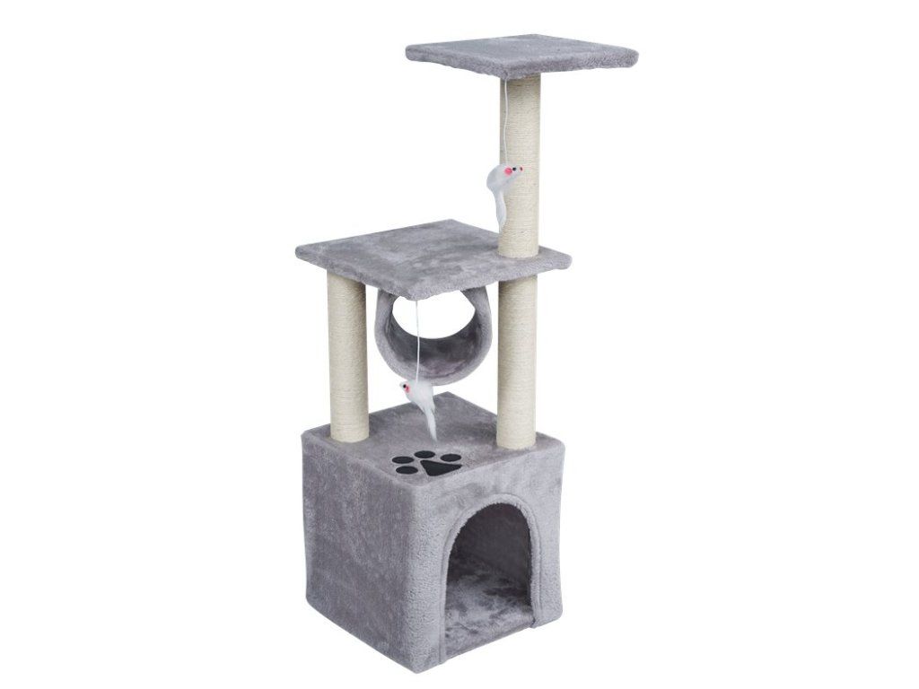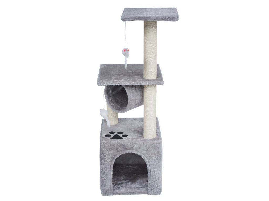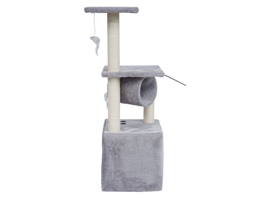 Odolné sloupky obalené přírodním sisalem umožňují vaší kočce volně si brousit drápy a sledovat své přirozené instinkty. Více úrovní škrábání činí sloupek funkčnějším a podporuje aktivitu. Je to účinný způsob, jak chránit váš nábytek a poskytnout vaší kočce denní dávku pohybu. Dvě plošiny, tunel a hračky