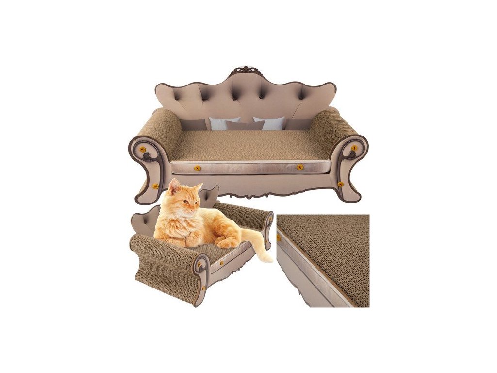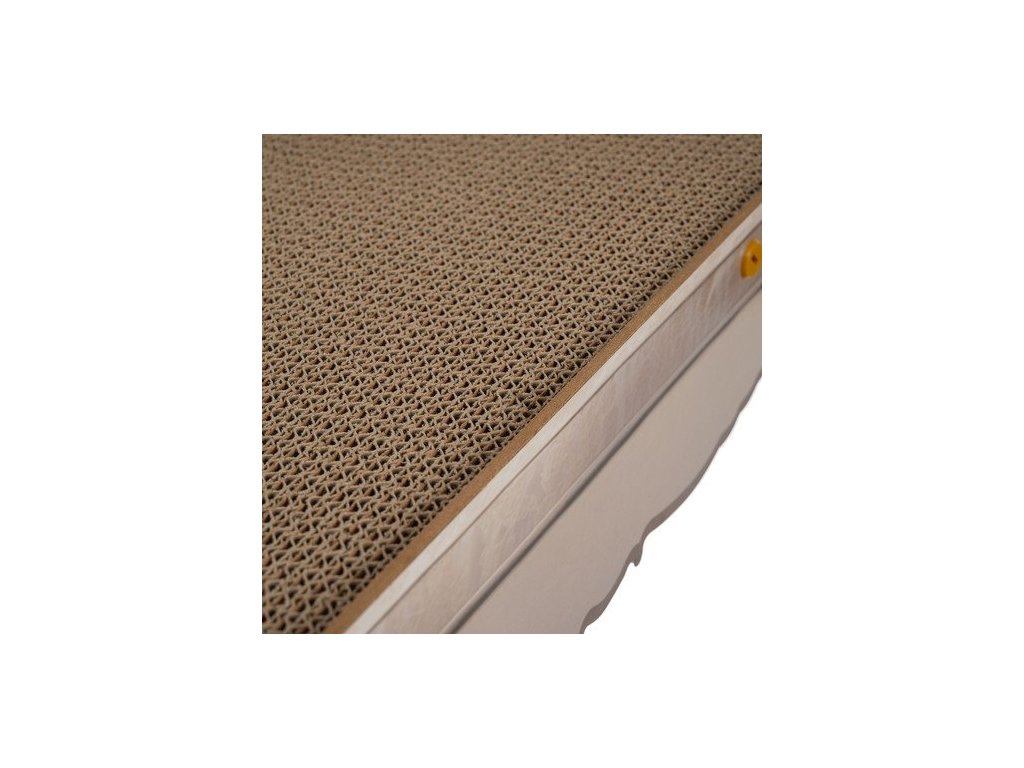 ODOLNÉ A PEVNÉ MATERIÁLY - škrabadlo je vyrobeno z vrstveného lisovaného kartonu mimořádné odolnosti, která zaručuje dlouhodobé používání. Vlnitá lepenka je ideální pro broušení drápků, uspokojuje potřeby vaší kočky při škrábání a zároveň chrání váš domácí nábytek před poškozením. Zadní a přední část postele imituje starožitnou pohovku a je vyrobena z kvalitní MDF desky, která dodává celku elegantní vzhled a zajišťuje pevnost konstrukce.