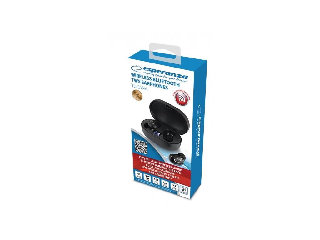 Sluchátka Esperanza EH226K TWS TUCANA, Bluetooth 5.0, černá