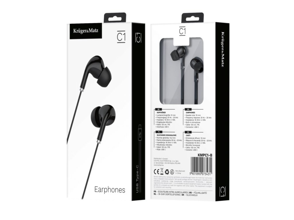 Sluchátka Kruger&Matz KMPC1-B do uší s mikrofonem, USB-C, černá