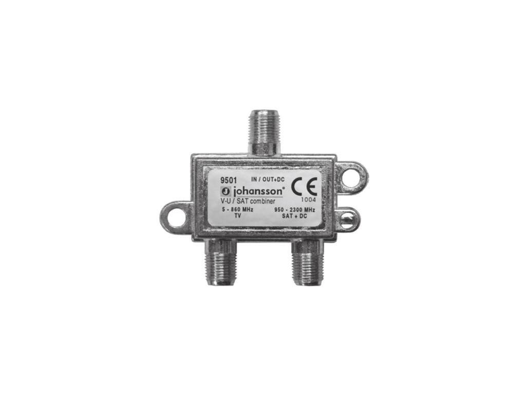 Slučovač SAT/TV Johansson 9501 efektivně sloučí satelitní a terestriální TV signál. S frekvenčním rozsahem 950-2150 MHz a útlumem 2 dB je ideální pro kvalitní příjem.
