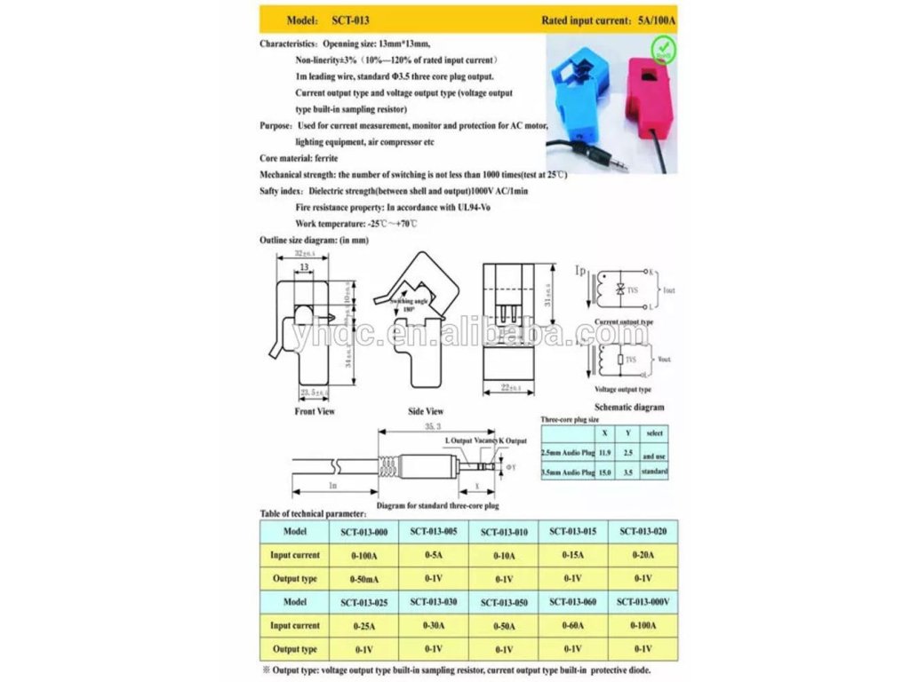 Vlastnosti produktu - proudová sonda SCT-013-000 100A/50mA