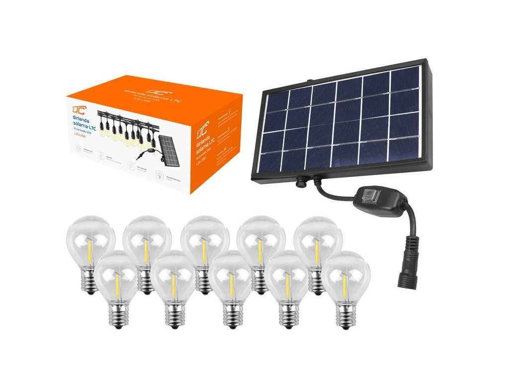 Solární řetěz HQ LTC LXLL106 girlanda 7,6 m, E17, 10x G40, 2700K, 3000mAh