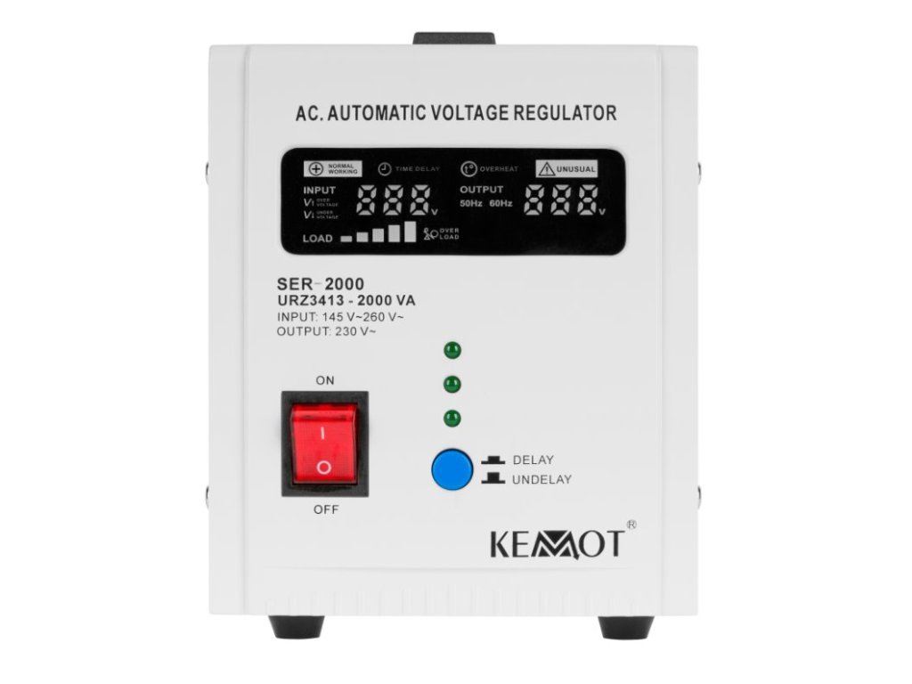 Automatická regulace zajišťuje vysokou přesnost výstupního napětí. KEMOT SER-2000 je vhodný pro domácí i kancelářské použití,