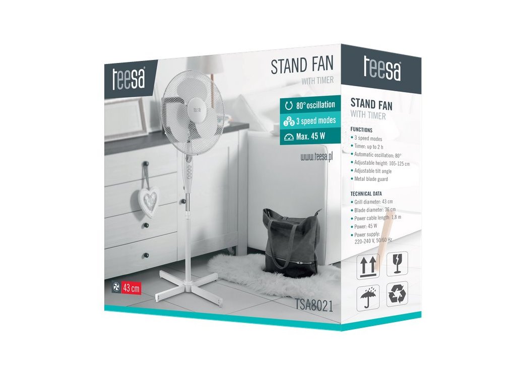 Stojanový ventilátor s křížovým stojanem TEESA TSA8021, časovač