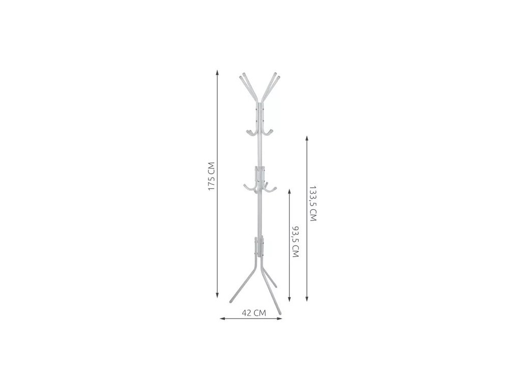 SPECIFIKACE - barva: bílá; materiál: kov; rozměry: 42 x 42 x 175 cm; výška úrovně háku (nízká/střední/vysoká): 93,5/133,5/175cm; hmotnost věšáku: 1,556 kg; hmotnost s obalem: 1,623 kg.