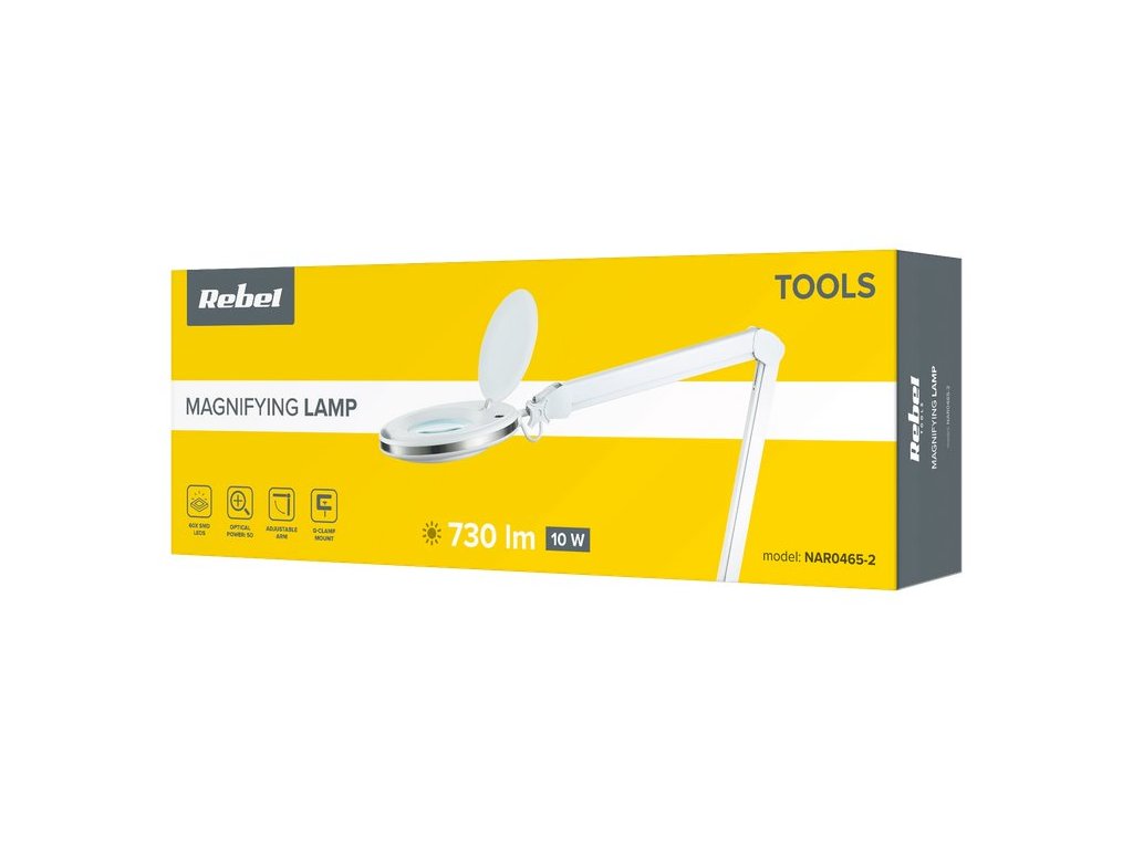 Stolní lampa s lupou do dílny REBEL NAR0465-2, 5D, 10W, 6500K