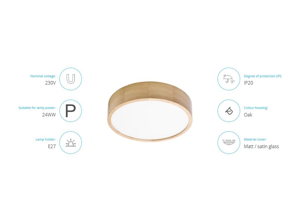 Vlastnosti stropního svítidla dubové dřevo ORNO AD-PL-6292OE27SM