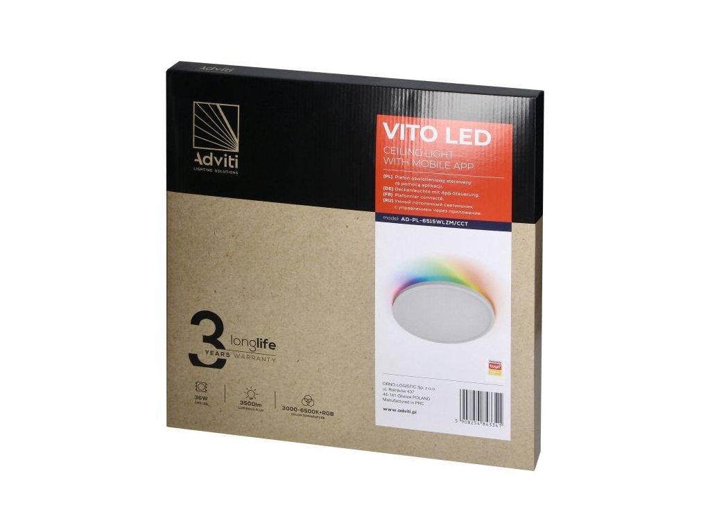 Svítidlo VITO je vybaveno dvěma zdroji světla – hlavním LED panelem a RGB LED páskem. Hlavní LED panel poskytuje základní osvětlení s možností regulace teploty světla od 3000K do 6000K, což vám umožní snadno přizpůsobit atmosféru místnosti podle vašich potřeb.