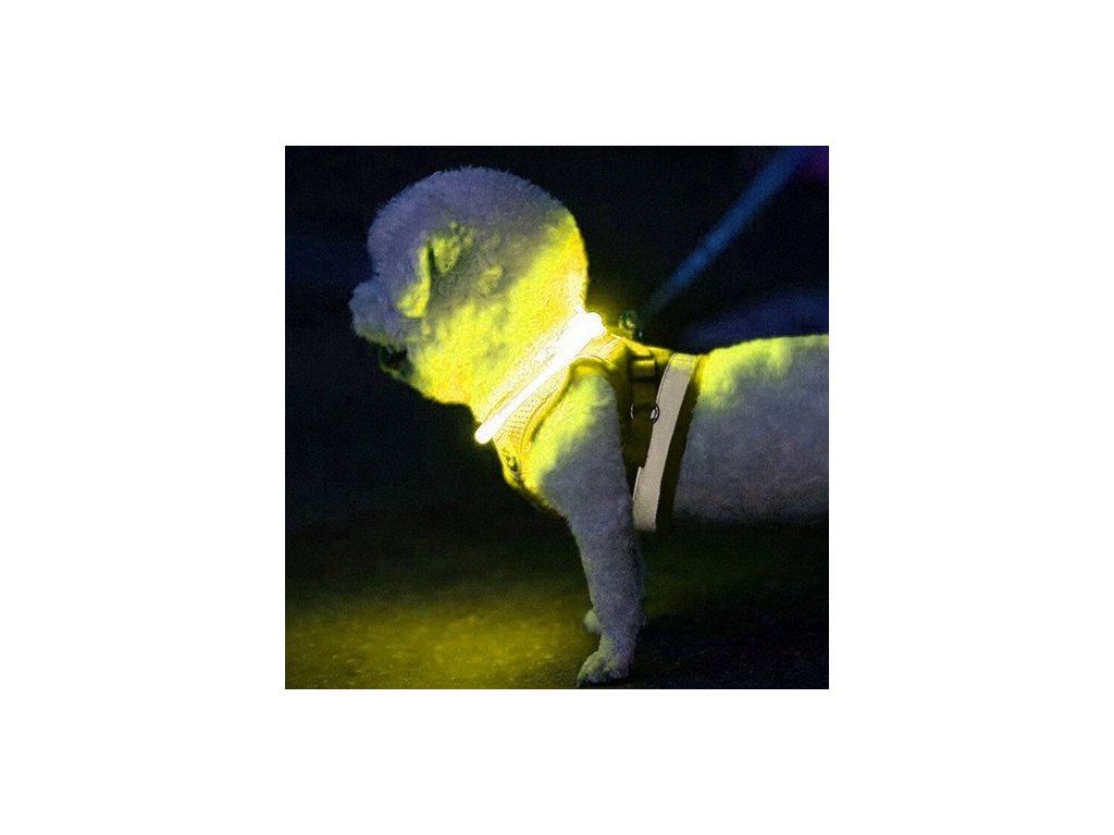 - 3 režimy svícení - pásek má tlačítko ON/OFF a 3 režimy svícení: stálé svícení, blikání a rychlé pulzování, což umožňuje přizpůsobit viditelnost různým potřebám a podmínkám, váš pes bude viditelný i v mlze