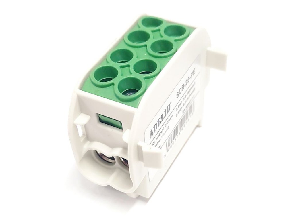 Svorkovnice rozbočovací Adelid SCB-25-G je ideálním řešením pro efektivní montáž na DIN lištu. Vyniká modulárním systémem a snadnou instalací díky dvouřadovým šroubovacím svorkám.