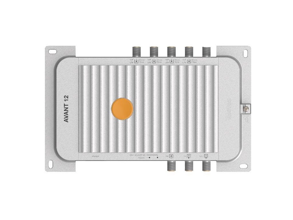 Avant 12 je výkonný programovatelný zesilovač nové generace (DSP) určený pro systémy společných TV antén. Zesilovač je vybaven digitálním zpracováním kanálů, libovolný vstupní kanál lze převést na libovolný výstupní kanál s automatickým nastavením zesílení dle zvolené výstupní urovně, kterou lze nastavit v rozmezí 90-118 dBµV. Avant 12 disponuje pěti vstupy, konfigurovatelnými ve dvou režimech: 4x UHF/VHF + FM nebo 3x UHF + DAB + FM. Vstupům VHF/UHF lze přiřadit až 32 vysoce selektivních filtrů s real-time AGC. Vstupy účinně potlačují rušení z pásem LTE (700/800 MHz) pomocí SAW filtru. Nastavování Avant 12 se provádí přes Bluetooth v smartphonu nebo tabletu pomocí jednoduché intuitivní aplikace ASuite pro Android a iOS. Aplikace ASuite je k dispozici v češtině. Upozornění: Pro nastavení je nutné stáhnout aktuální verzi programu ASuite.