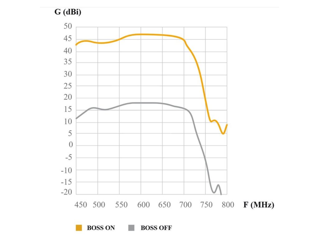 Zisk až 47 dBi v aktivním režimu nebo až 19 dBi v pasivním režimu.