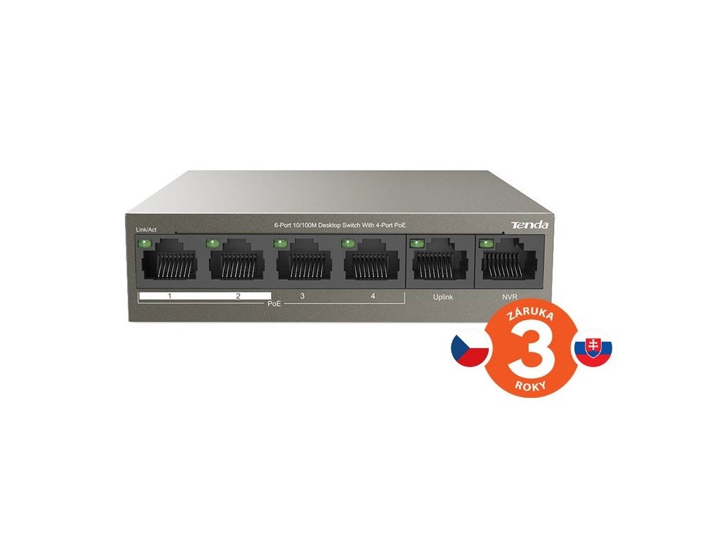 - 6 portů RJ45 s automatickou detekcí rychlosti