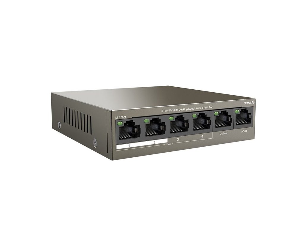 Tenda TEF1106P-4-63W 6xRJ45 Switch s 4xPoE 802.3af/at, 10/100Mbps, celkem 58W, Kov