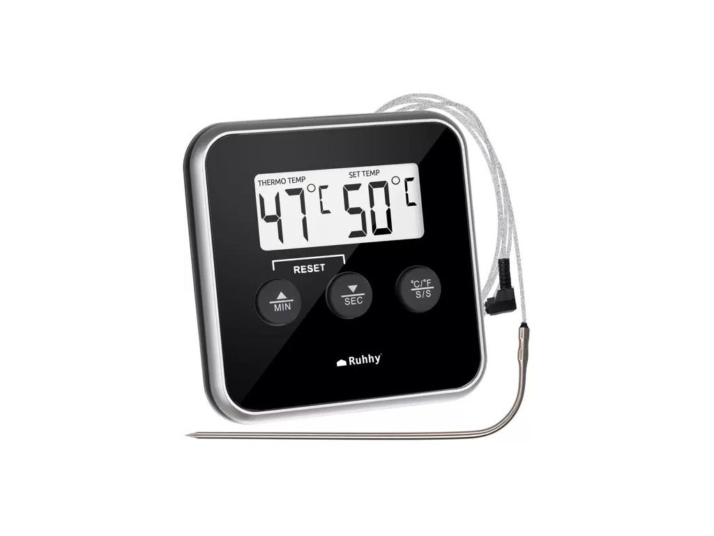 Teploměr do masa digitální se sondou 1,2M Ruhhy 19155 je perfektní pomocník pro všechny, kdo chtějí mít dokonalou kontrolu nad teplotou při vaření. Tento přístroj je určen pro amatérské kuchaře i profesionály, kteří ocení jeho jednoduché ovládání a široké možnosti využití. S jeho pomocí snadno změříte teplotu masa, oleje nebo tekutin, a to v rozmezí od 0 do 250 °C. Už se nemusíte obávat, že maso bude nedovařené nebo naopak převařené.