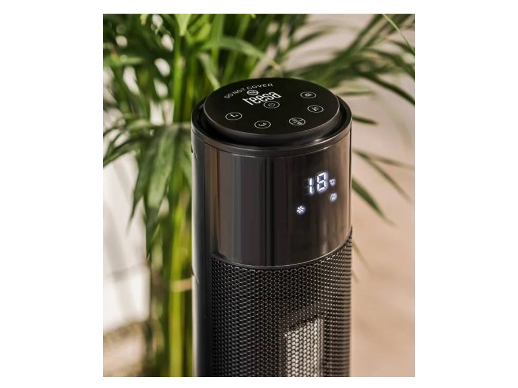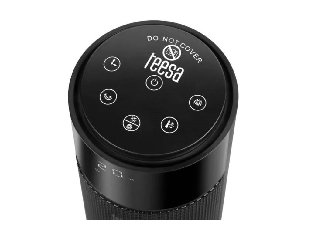 Moderní design elektrického ohřívače ventilátoru Teesa je zdůrazněn jasným LED displejem umístěným na krytu a dotykovým panelem, který umožňuje zvolit preferovaná nastavení. Pro ještě větší pohodlí obsahuje sada dálkové ovládání, které vám umožní spravovat funkce zařízení, aniž byste museli vstávat z pohovky.