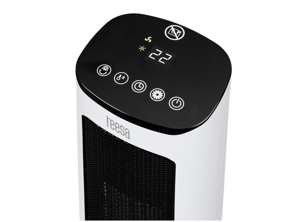 Díky modernímu designu se elektrický ohřívač Teesa dokonale hodí do výzdoby moderních interiérů. Snadné ovládání přístroje zaručuje dotykový ovládací panel a přehledný LED displej. Pro ještě větší pohodlí je součástí sady dálkový ovladač, který vám umožní ovládat funkce zařízení, aniž byste museli vstávat z gauče.
