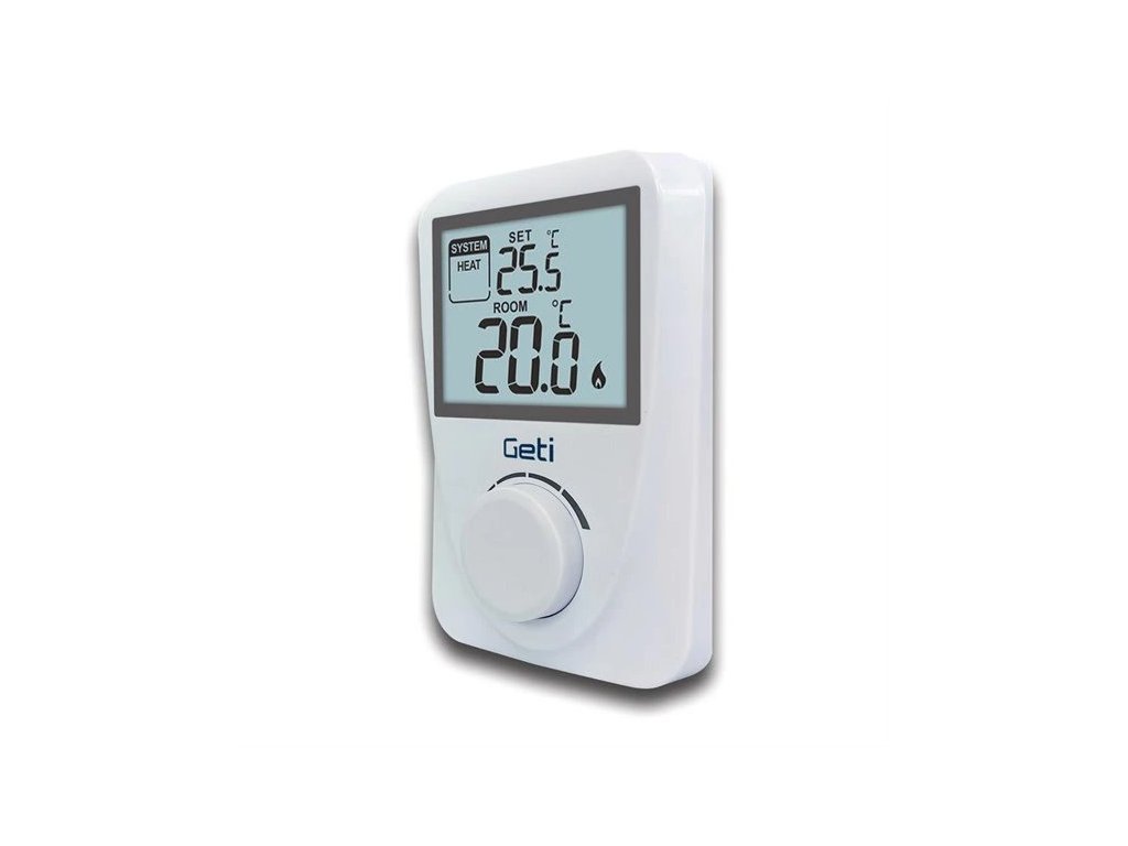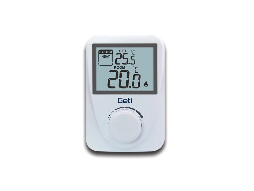 Jednoduchý pokojový drátový termostat GETI GRT01 hlídá ideální teplotu a reguluje topicí systém nebo klimatizaci ve dne i v noci. Výhodou je jednoduché ovládání a podsvícený displej s velkými číslicemi a informacemi o aktuální požadované teplotě. Termostat disponuje ochranou proti zamrznutí, díky níž jej můžete používat i v prostorách, které v zimě nevytápíte.