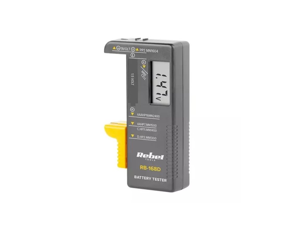 Typy měřených baterií: 9 V, knoflíkové, AAA, AA, C, D